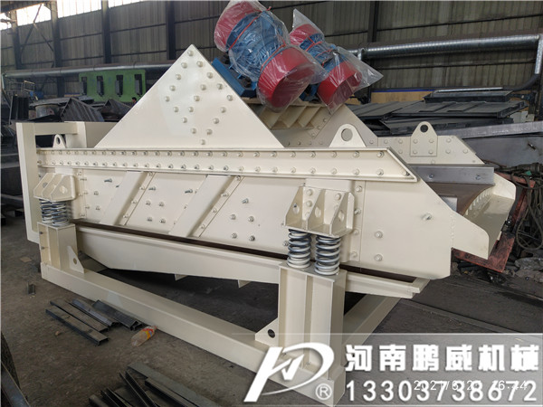 鵬威機械生產的尾礦砂高頻篩-洗砂高頻脫水篩-水洗砂脫水回收篩分一體機設備兩組偏心質量產生的離心力沿振動方向的分力疊加,反向離心抵消,從而形成單一的沿振動 方向的激振動,使篩箱做作往復直線運動。具有結構先進,堅固耐用,噪音低,維修方便等優點。適用于選煤、選礦、電力、化工、輕工等部門,對中、細粒度物料進行干、濕式篩分或脫水、脫介、脫泥。